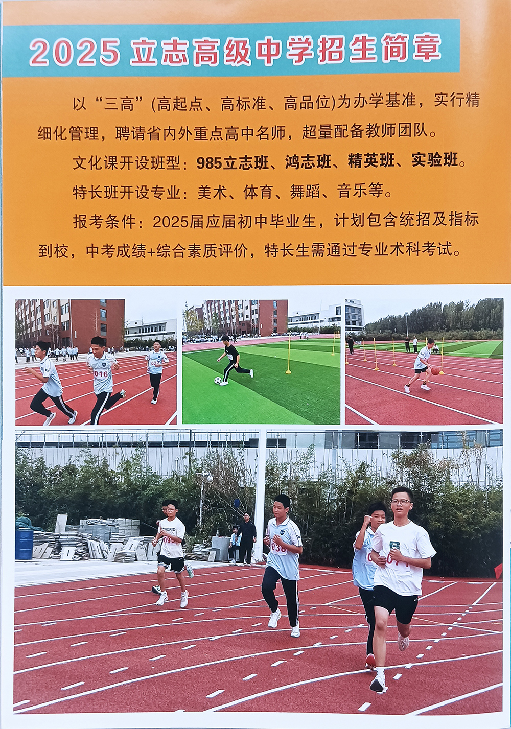 招生简章,邯郸立志高中学校文化课开设班型:985立志班,鸿志班,精英班,实验班。