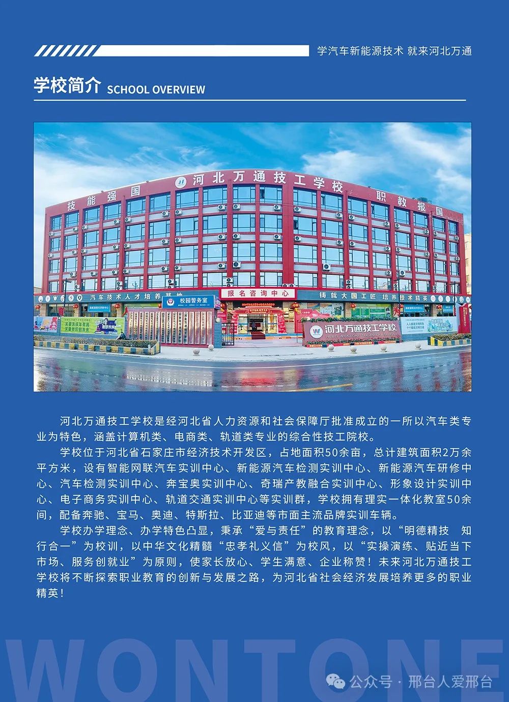 是经河北省人力资源和社会保障厅批准成立的一所以汽车类专业为特色,涵盖计算机类、电商类、轨道类、形象设计类等专业的综合性技工院校。